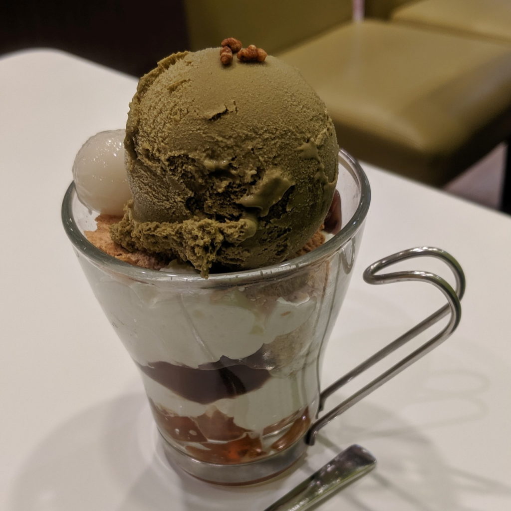 いつもと趣向を変えて和風スイーツを食べましたが、渋いほうじ茶アイスと、あっさりとした生クリーム、ほうじ茶のゼリーのおかげであっという間に完食でした。