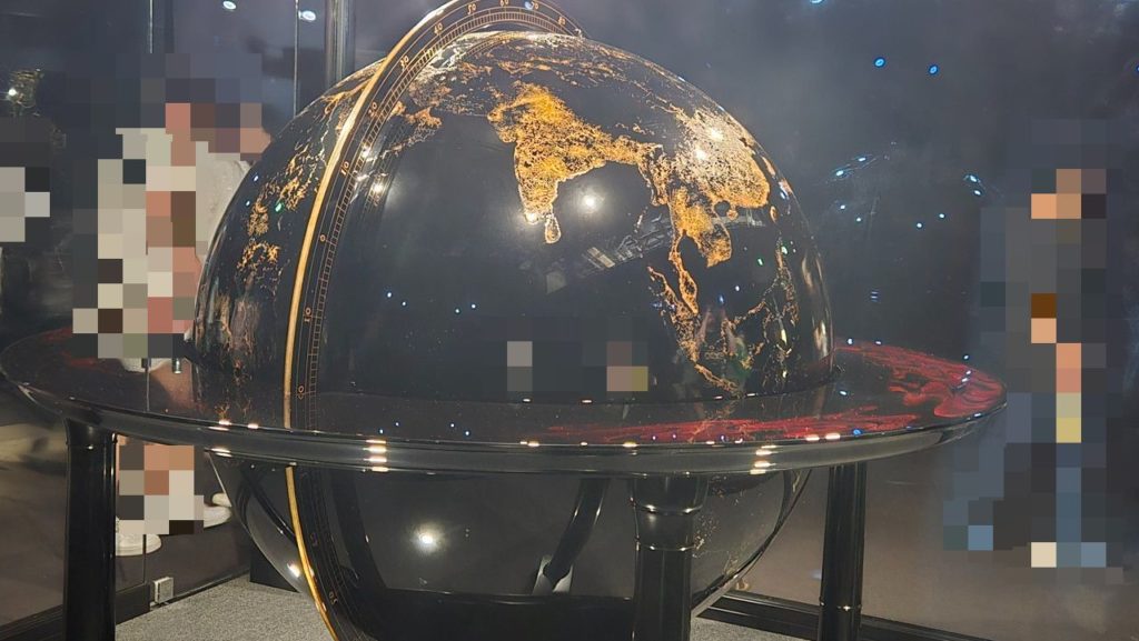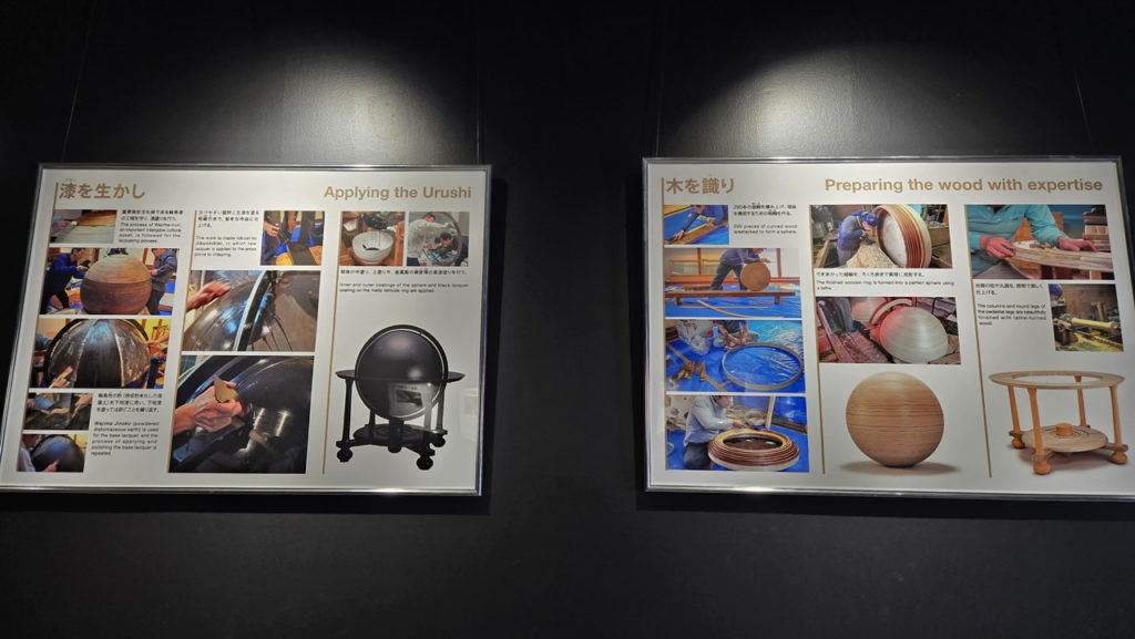 石川県の「輪島塗」で作られた黒い大きな地球儀が目玉とされています。輪島塗技術保存会が5年かけて作ったといわれ、展示品を見ると技術の結集の素晴らしさを感じます。