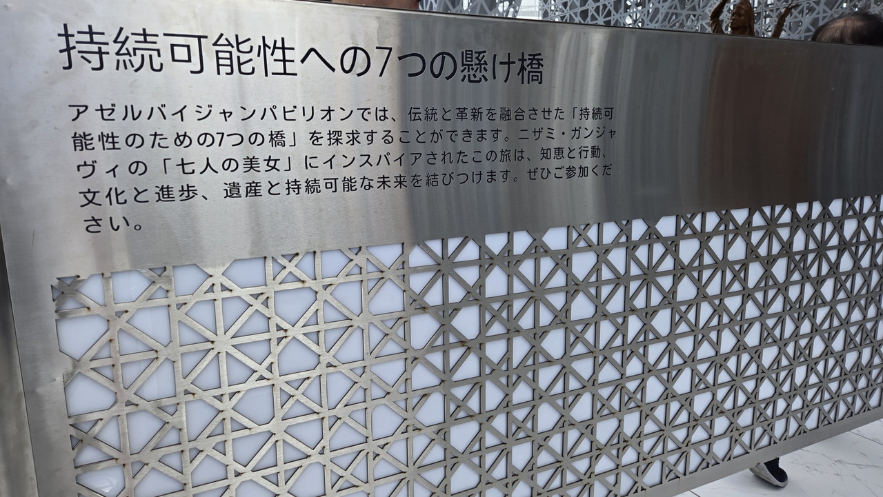 「7つの架け橋」の説明書きや、建物内で流れる映像然り、持続可能性についての紹介をフィーチャリングしているのかなと思いました。