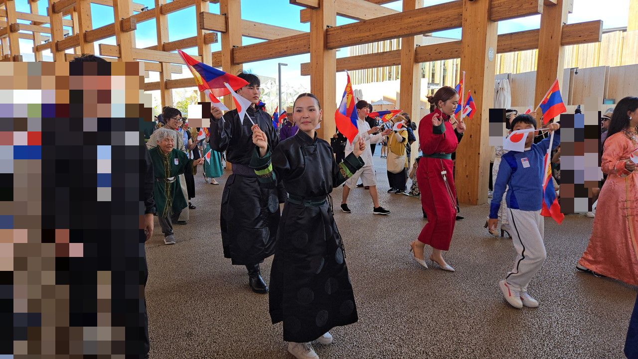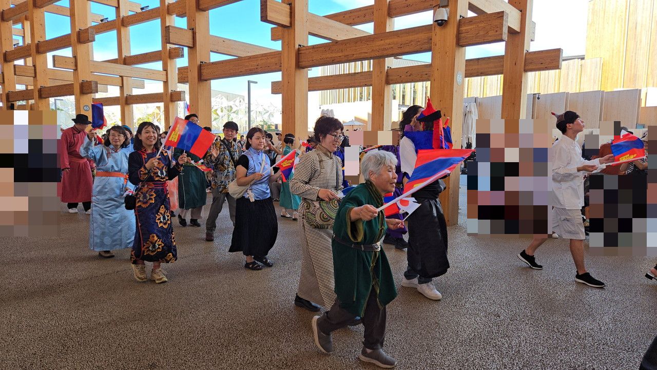 しばらくすると、モンゴルのパレードがやってきました。現地出身と思われる方、お年寄りの方を含めて数十人が旗を持ってダンスを披露していました。