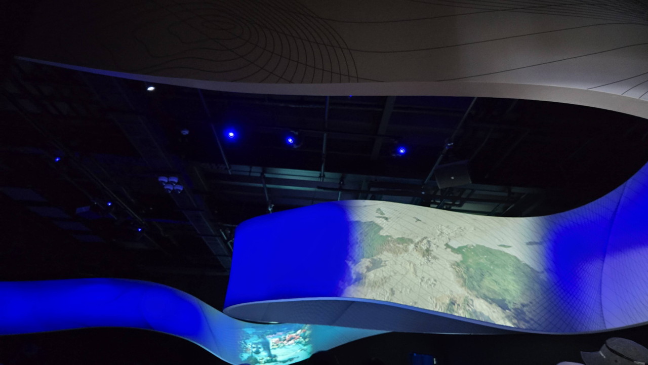 展示エリアを抜けると超巨大スクリーンからの映像も流れています。