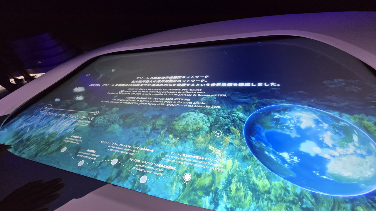 このパビリオンのテーマは「海」とのことで、展示エリアではポルトガル製の地図が最古の航海図の一つであることや、海洋保護に関する世界目標についてもアピールされています。