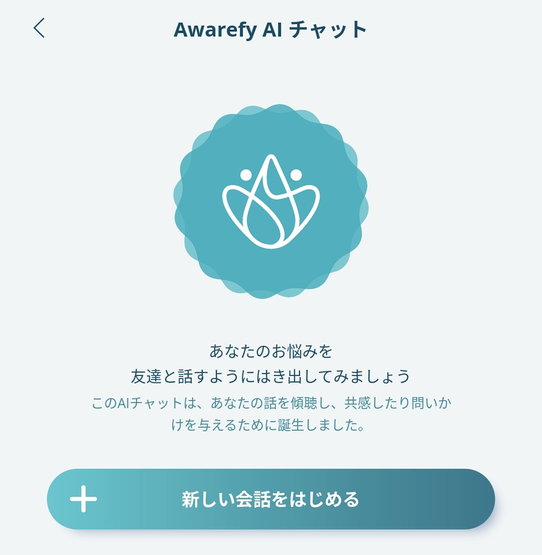 最近、このアプリをほとんど使っていなかったのですが、ふと起動してみると「Awarefy AI チャット」の文字が出ていました。