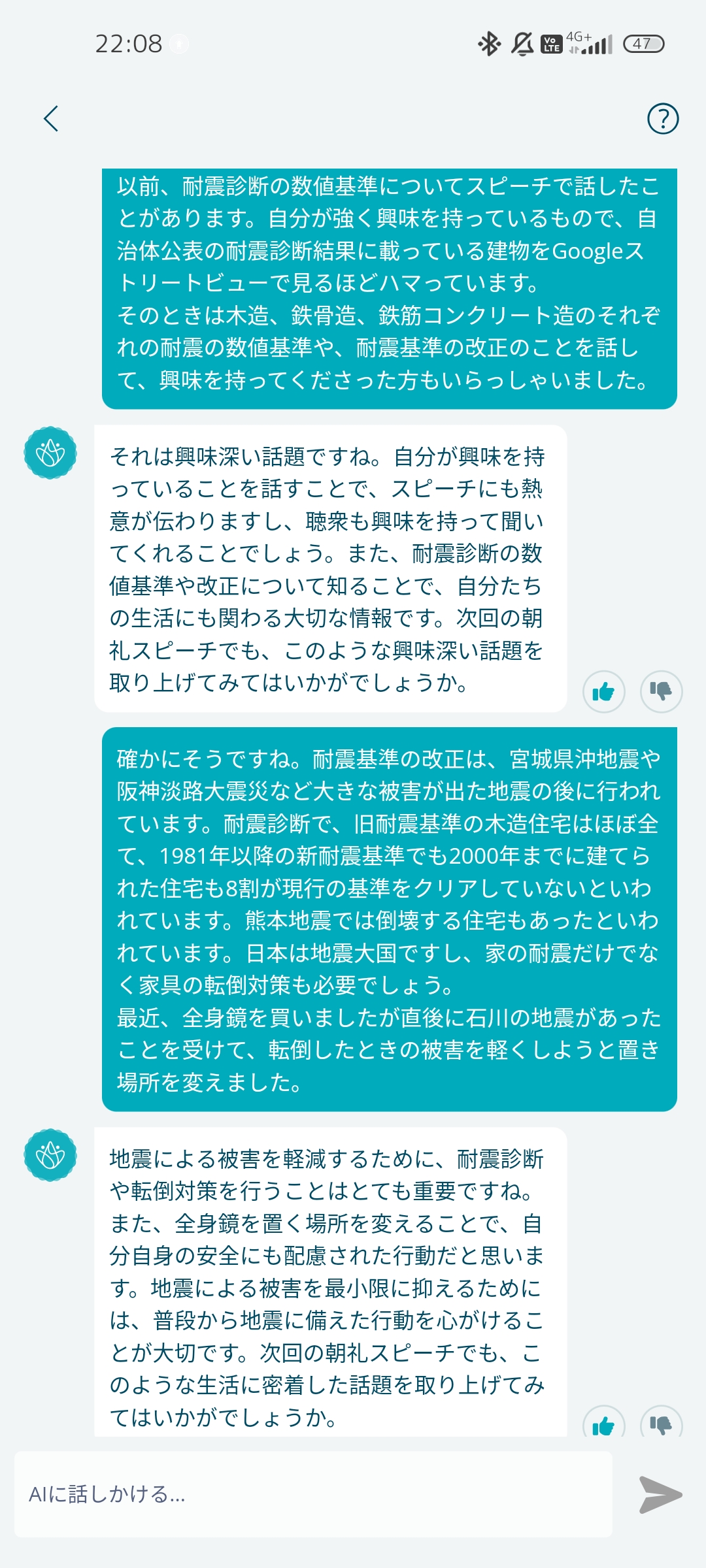 AIの反応がなかなか良かったのも手伝って、耐震基準の話にもなりましたね。