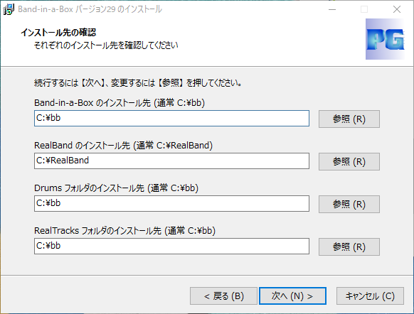 「Band-in-a-Box (バージョン番号) (グレード)」のインストーラには、自動的または手動でインストールが必要なものの記載があるのでメモして控えておいたほうがよさそうです。