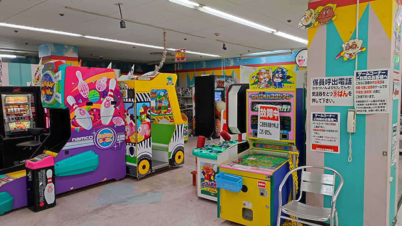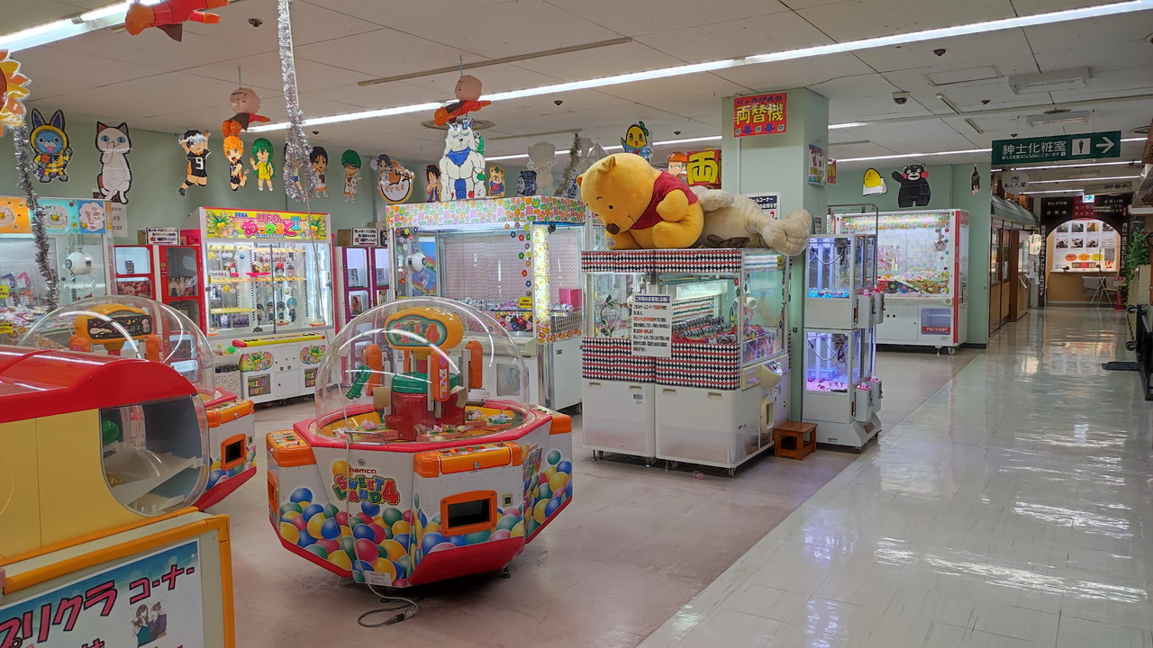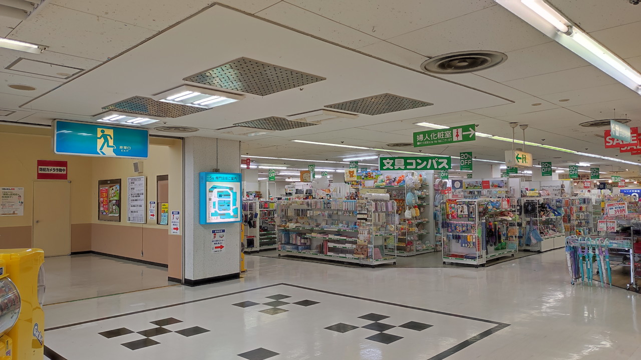 ゲームセンターに置いている機械は自分が子どもの頃に見たようなものばかりですし、文具コンパスも藤井寺の元SCにあった店舗と似たような商品が置いているという感じでした。