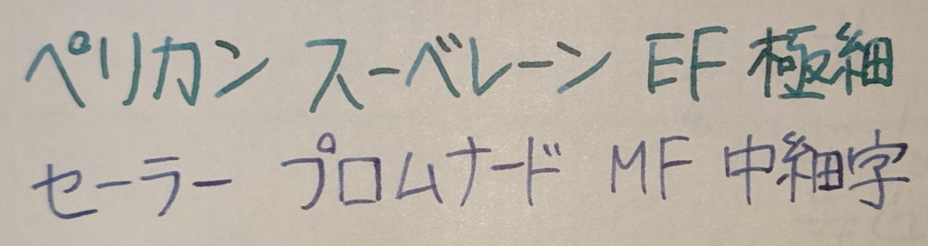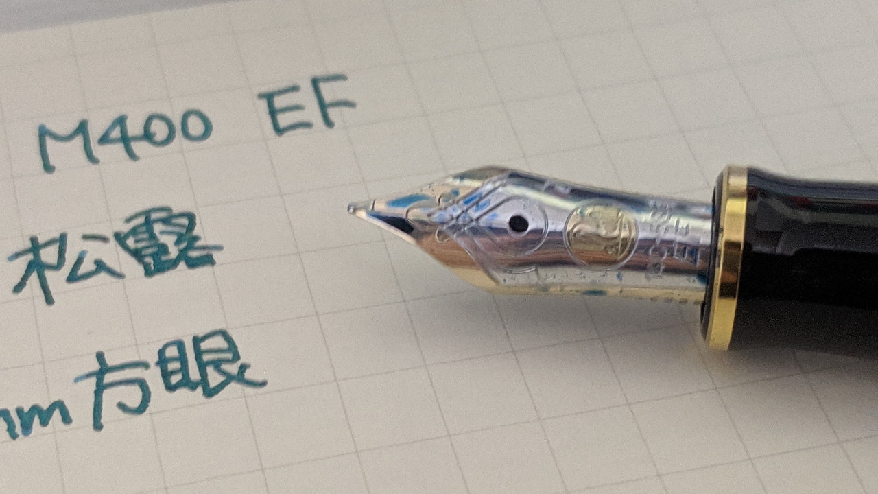 Mの後に続く数字に比例してサイズも大きくなりますが、M400は普段使いに最適だそうです。EFはExtra Fineの意味ですが、国産万年筆のプロムナードMF(中細)より太い文字になりました。