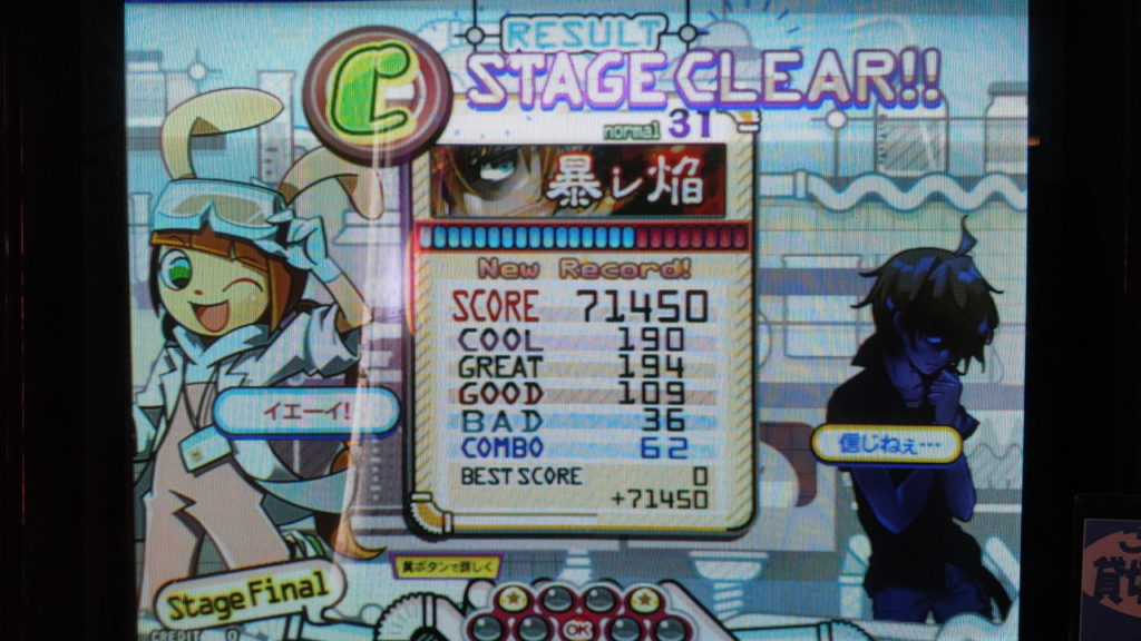 アーケードは、まだ数えるほどの日数しか触っていないのでキーボード操作と同じように遊べず、Livelyで9割以上クリア済みのレベルの譜面が全くできませんでした。