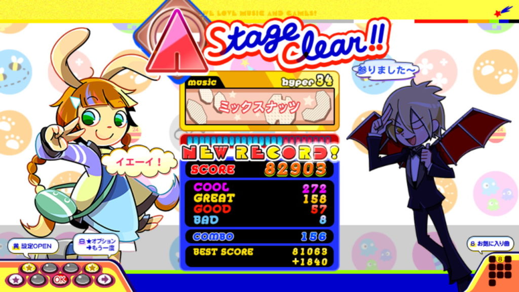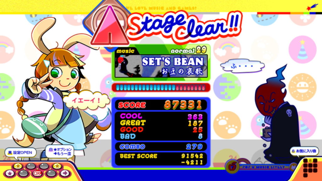 また、Livelyで既にクリアしている曲であっても、やはりキーボードとボタンの大きさの違いなどで感覚が掴めず、ボタンを押すタイミングを外した際の「BAD」カウントが多く出てしまったものもあります。