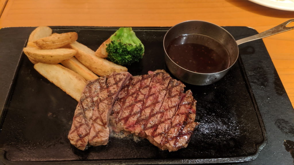 まずはあべのハルカスで食事。月1回、贅沢な昼食としてハルカスダイニングで牛フィレのステーキをいただきます。