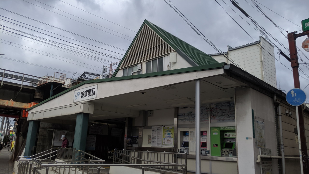 ずっと歩くとJR阪和線の美章園駅前に。通路から見て右手にある駅舎は小さめです。