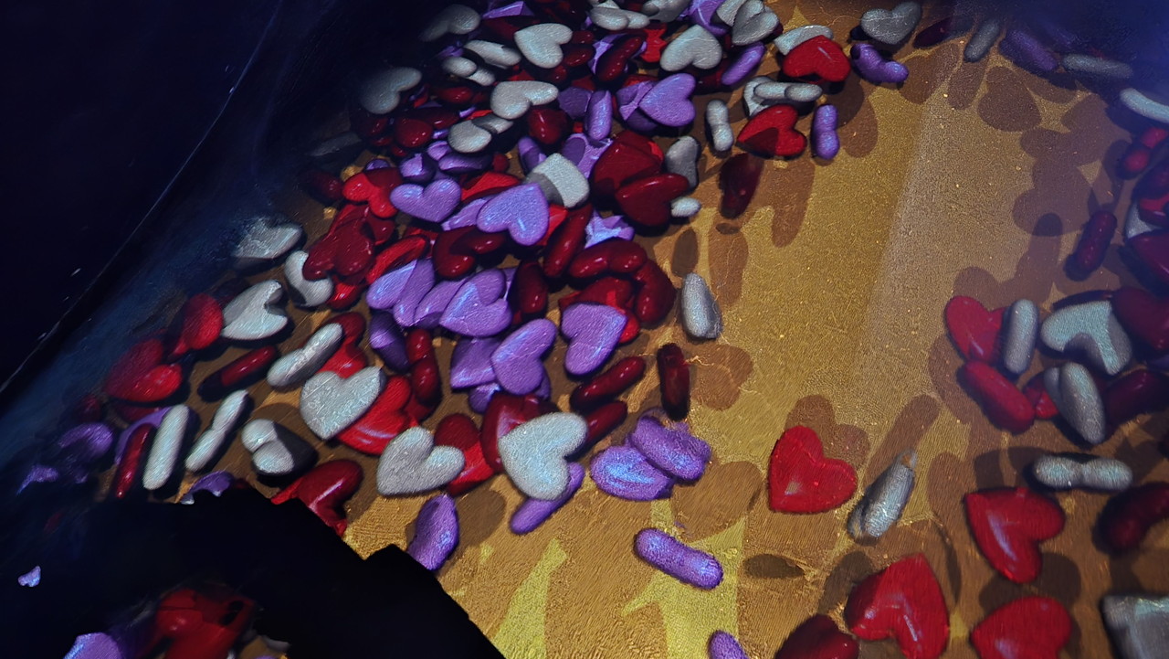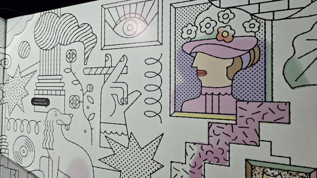 ハート形のオブジェクトの上を歩くと音が鳴ったり、オブジェに手をかざすと塗り絵ができたり。