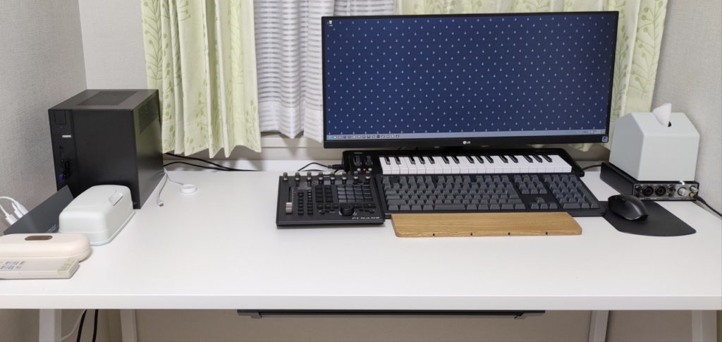 結局、1年弱使って今年の始めに手放しました。自宅にはゲーミングデスク導入前に使っていたデスクがありましたので、自室デスクをそちらに戻したうえで、奥行きの狭さ(45cm)をキーボードスライダーで補いました。