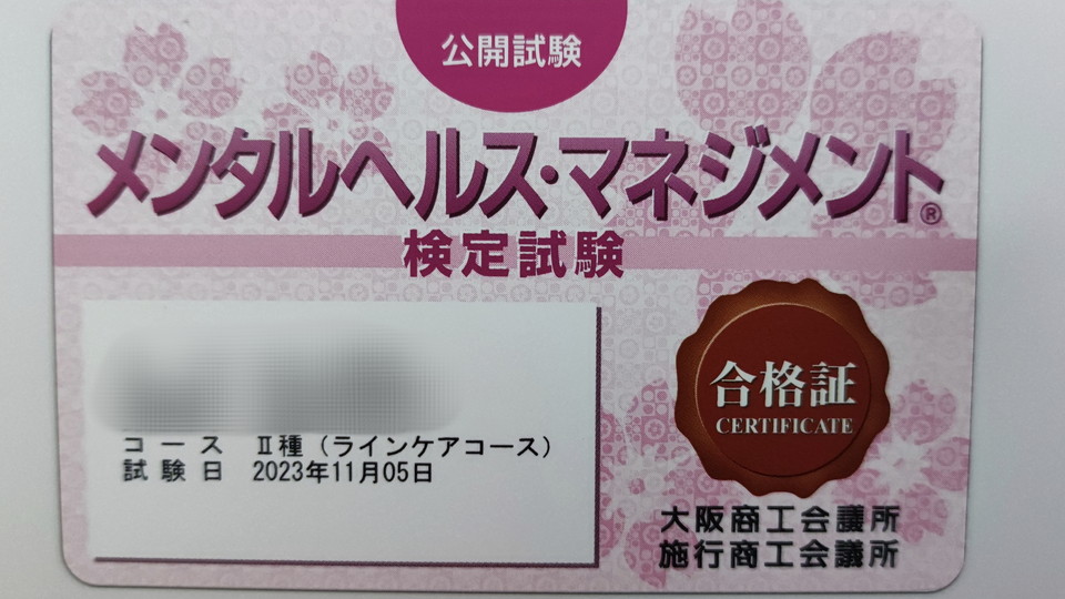 先月、「メンタルヘルス・マネジメント検定Ⅱ種」を受験しました。