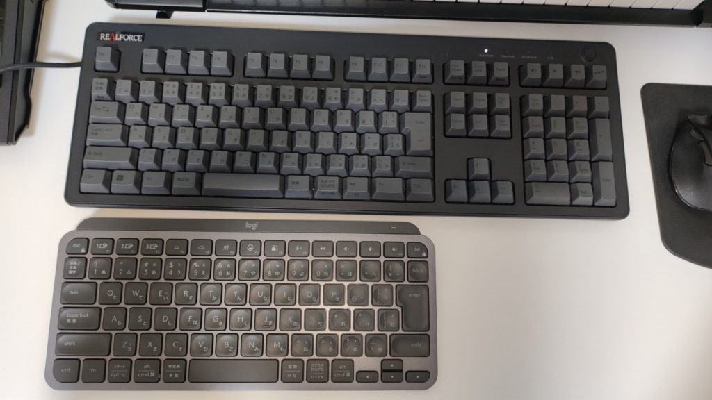 重さも500g程度とされ、REALFORCEの半分~3分の1くらい。当然ながら可搬性はこちらのほうが優れています。REALFORCEから変える理由としてはこのサイズ感が一番でした。