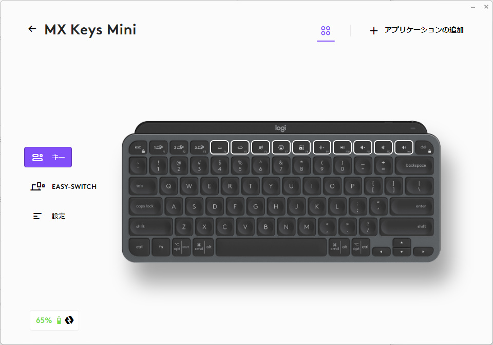 ロジクールの公式サイトから「Logi Options+」というアプリをダウンロード・インストールすると、MX Keys Miniでのショートカットのカスタマイズや、バッテリー残量の確認ができます。