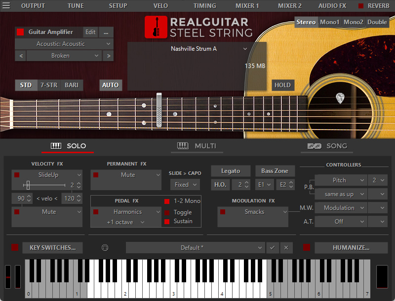 エレキギターのRealStratなどとそっくりのUIで、メーカーも同じです。昨秋に同メーカーのエレキの音源を購入したのですが、そのついでにアコギのほうも手に入れました。ちょうどセール期間中であり定価の半額で販売されていたからですね。