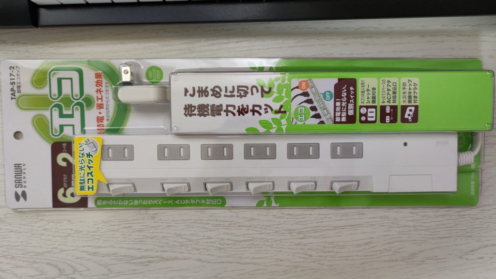 今まで使っていたものと同じような、個別オンオフスイッチ付きの6個口の電源タップです。