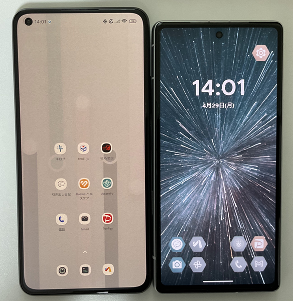 Pixel7aはMi11に比べて縦幅が短くてコンパクトです。