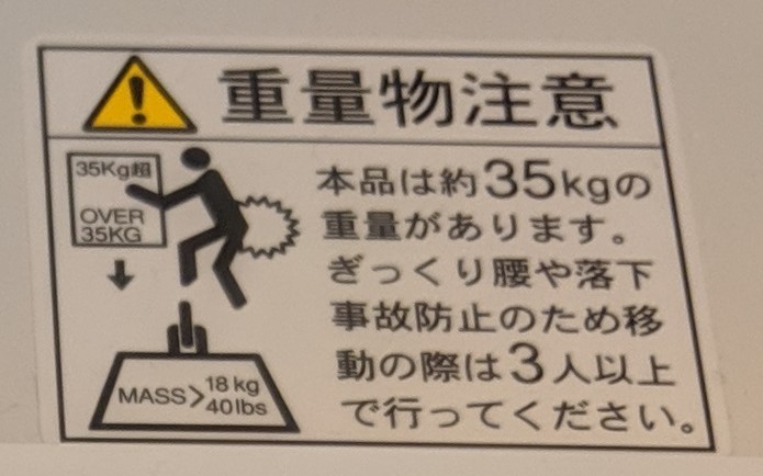 確かに重いものを持ちあげてぎっくり腰になるとよく聞くし、警告ラベルでしっかり防止すべきところです。