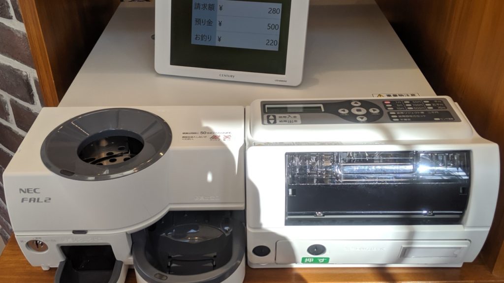 会計方法が、自動釣銭機での支払いになっていました。