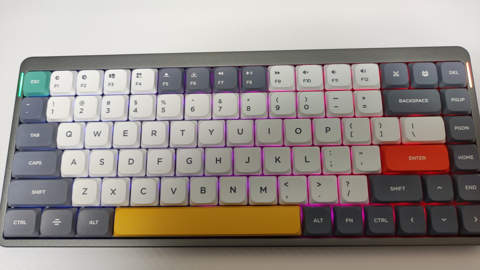 グレーとホワイトを基調にしつつ、アクセントの3色が可愛いキーキャップ。これを見たことが購入のきっかけになりました。