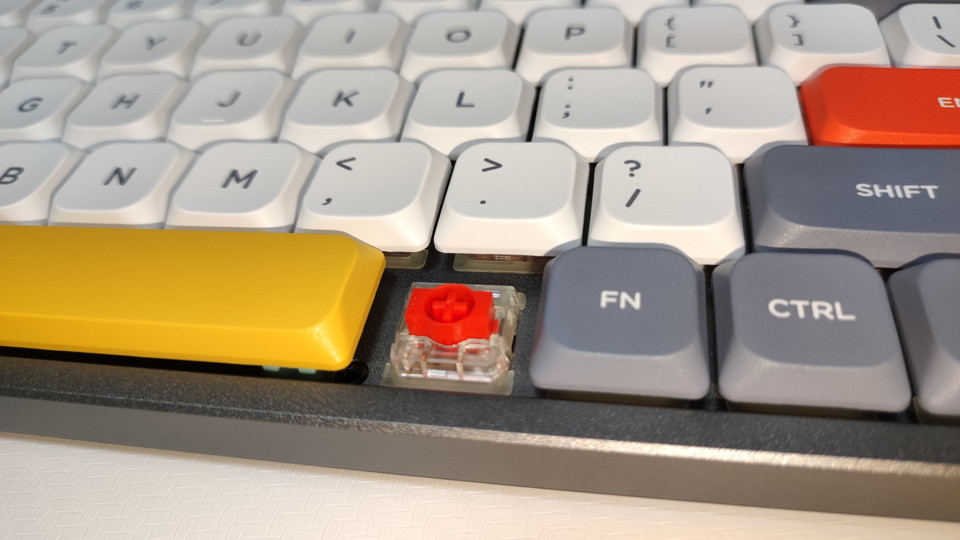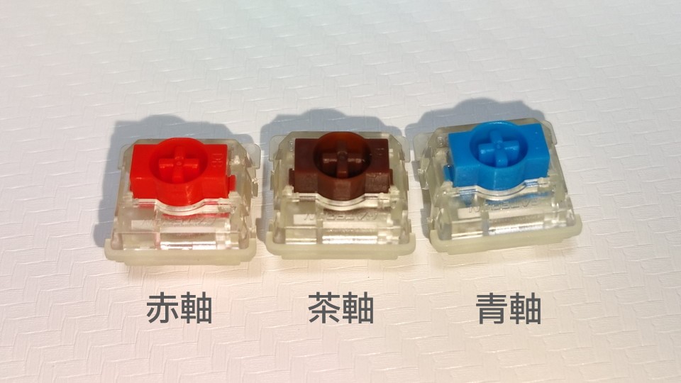 打鍵音はできるだけ静かなほうがいいので、3つのスイッチの中でも控えめといわれる赤軸を選びました。