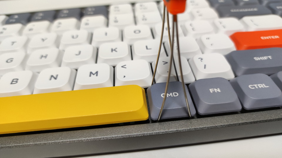 「ロープロファイル」という、一般的なメカニカルキーボードより薄いキーキャップが使われています。