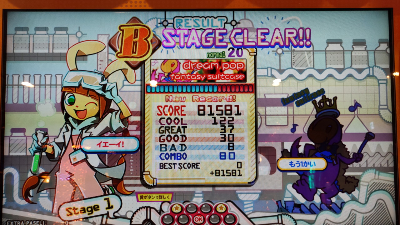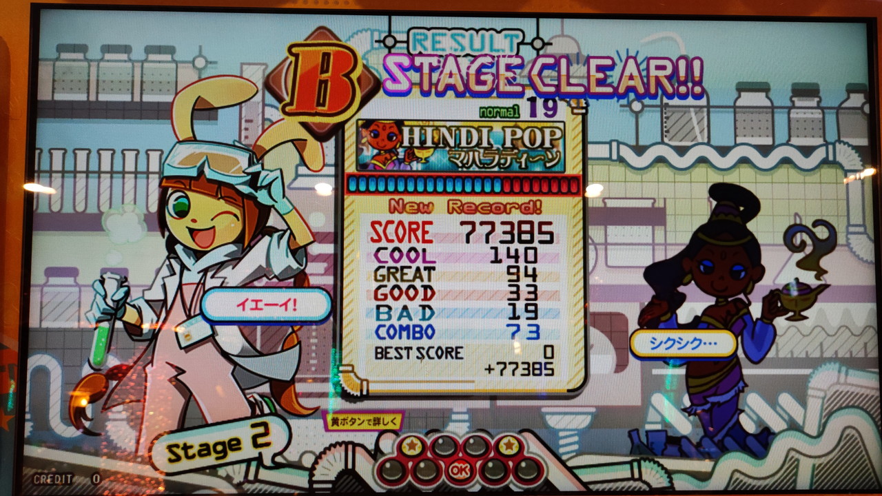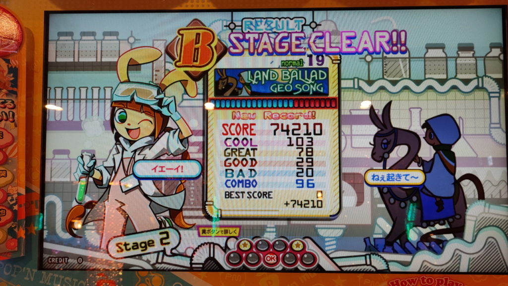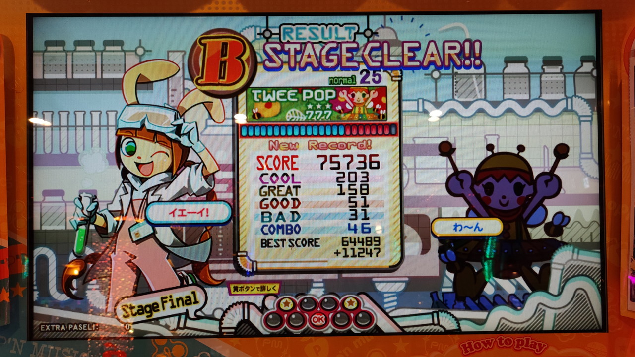 100円で3回プレイでき、クリアに失敗しても1曲の最後まで遊べます。自分は午前中(10:15~)に1時間、昼食後(13:10~)に1時間プレイしたのですが、平日で人が少なかったからです。