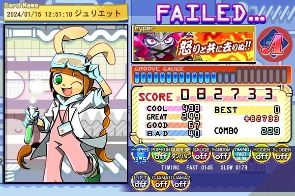 Livelyで銅◆なのでACでもクリアできるやろと思ってプレイしましたが、逆ボーダー。クリアまであと1メモリ足りませんでした。