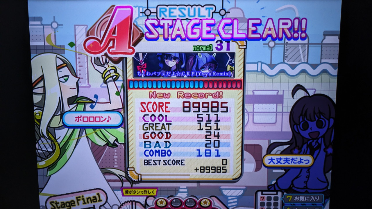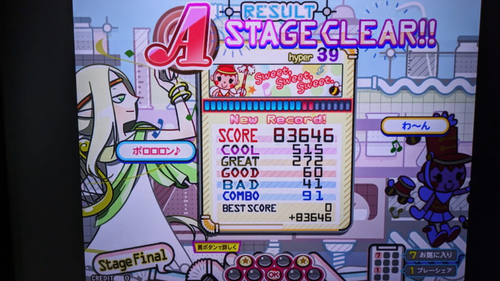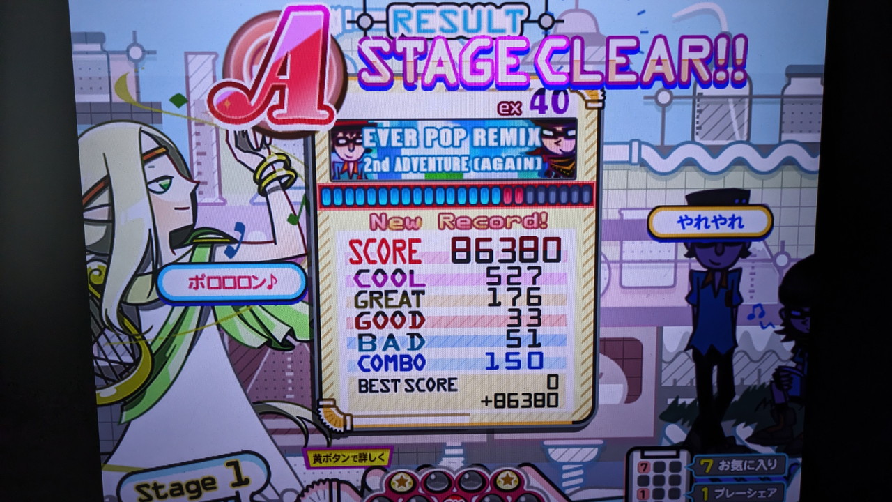 この日はポップンの後に別の楽しいリフレッシュをしたいと思って、プレイ時間は2時間半に留めました。