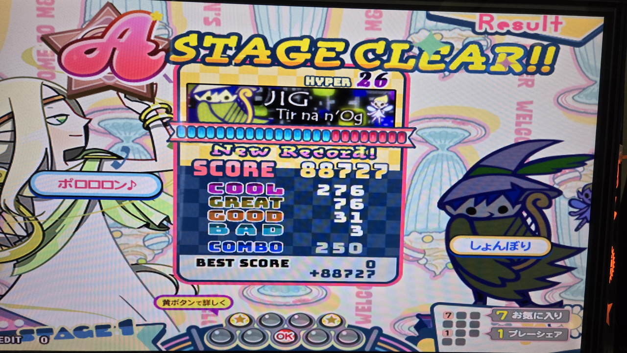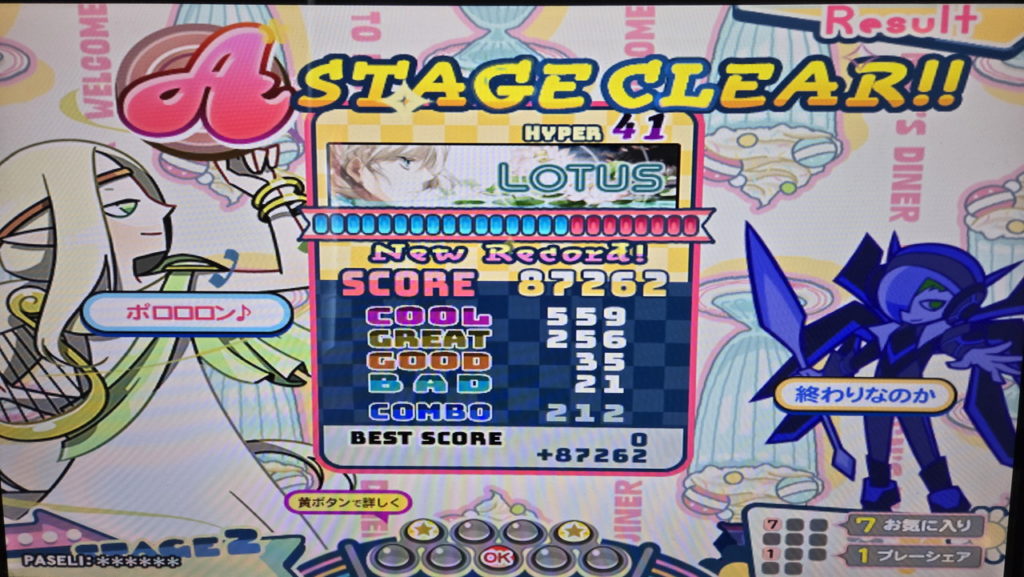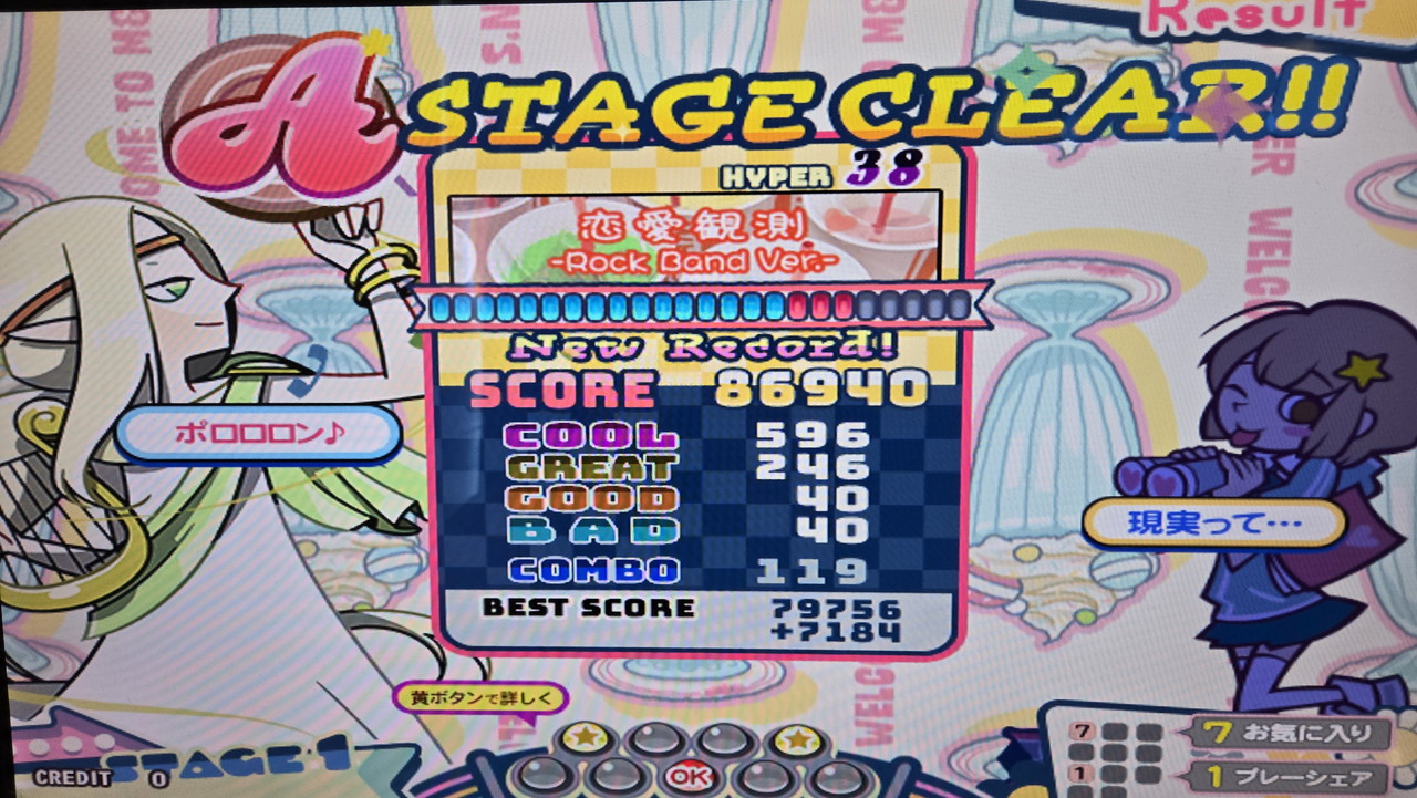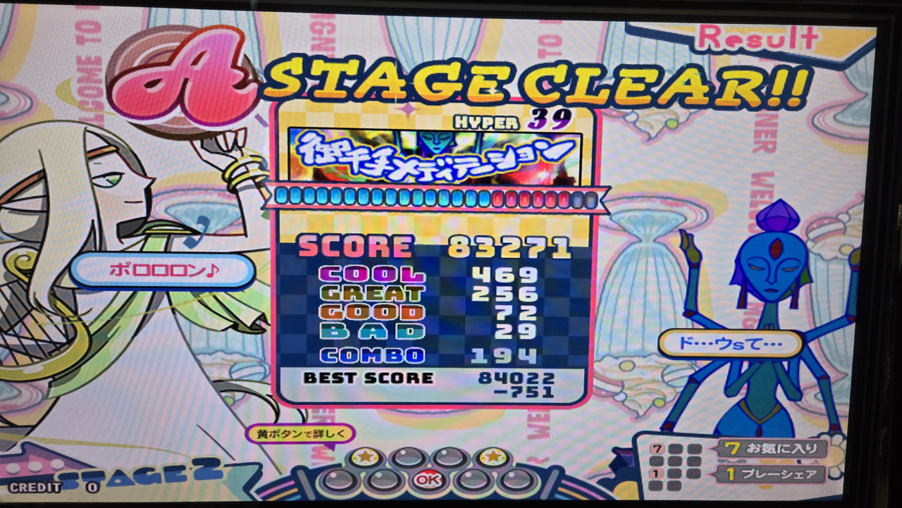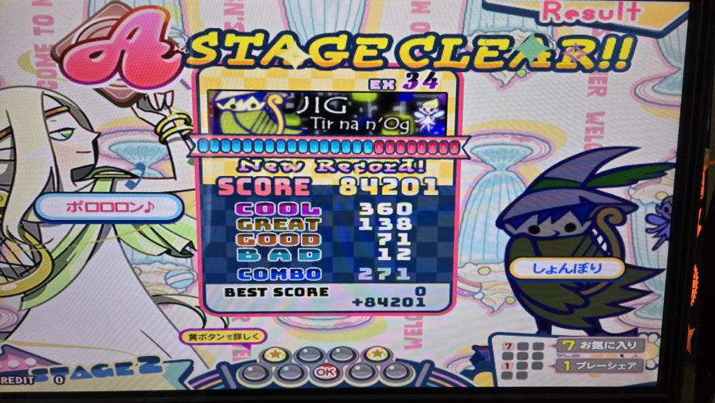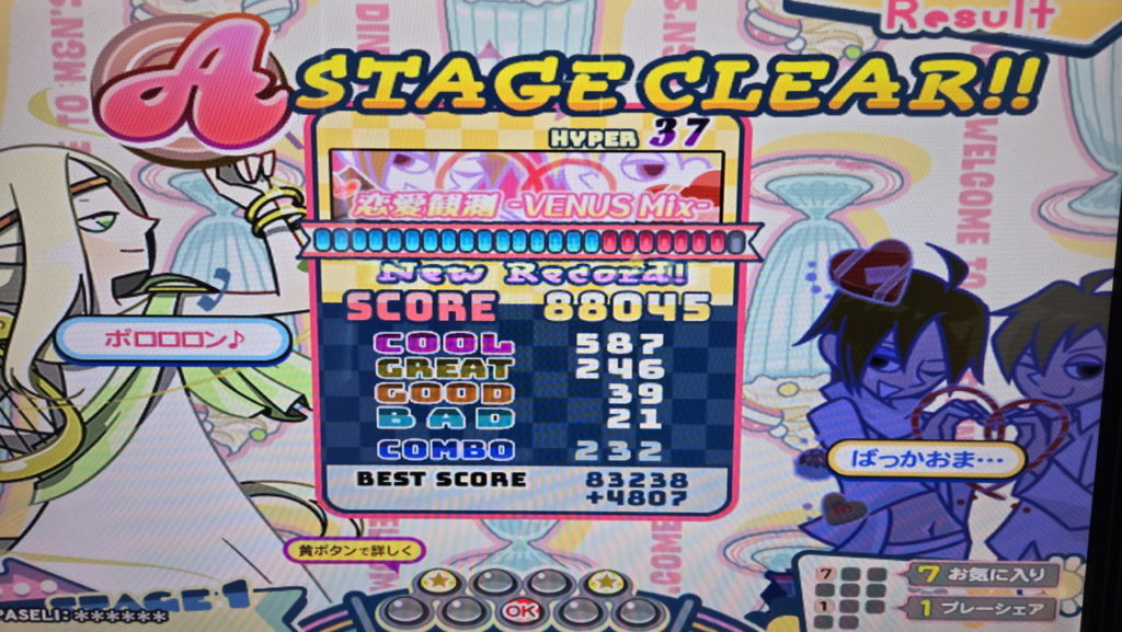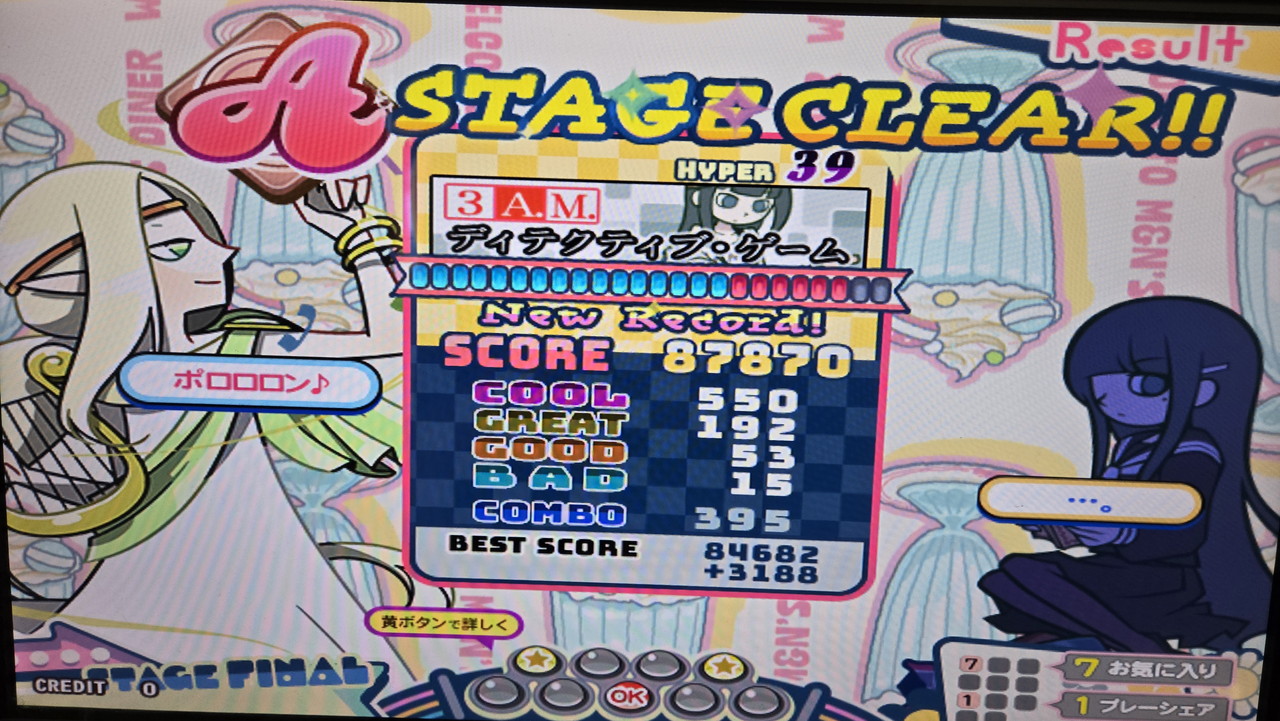 今回はBAD32でしたが、家庭用ポップンで初クリアしたときに比べてBAD数が少なく、ゲージ残量が多く、スコアも上回る結果となりました。