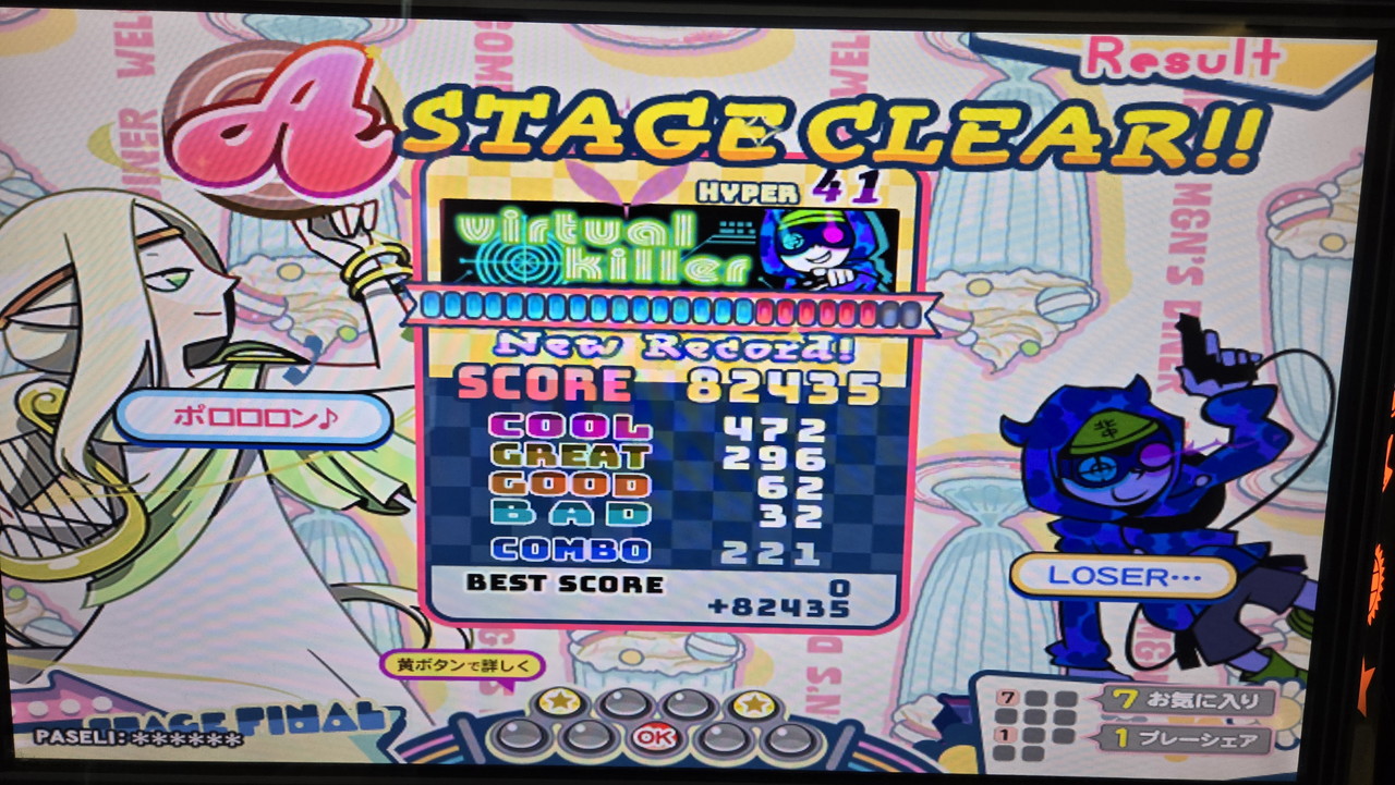 この日はレベル41の譜面を2曲クリアするという快調ぶり(41は全敗のことが多いため)で、その2曲目がvirtual killer HYPERです。