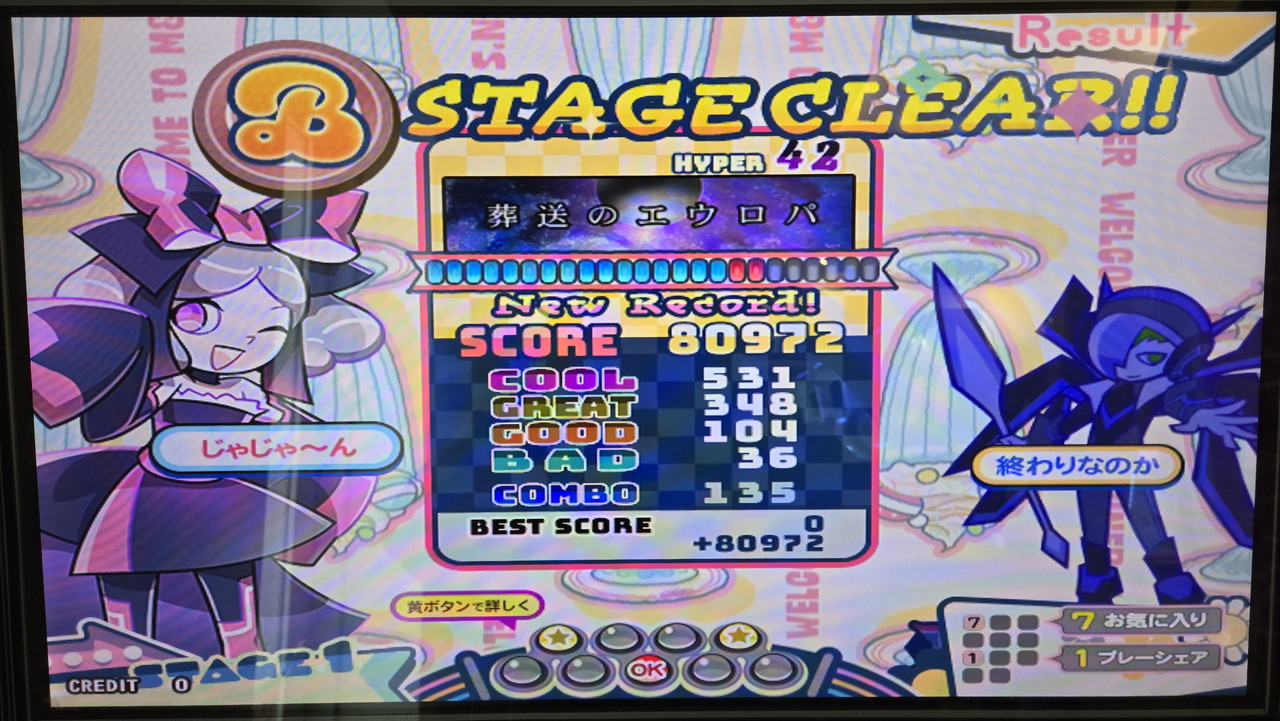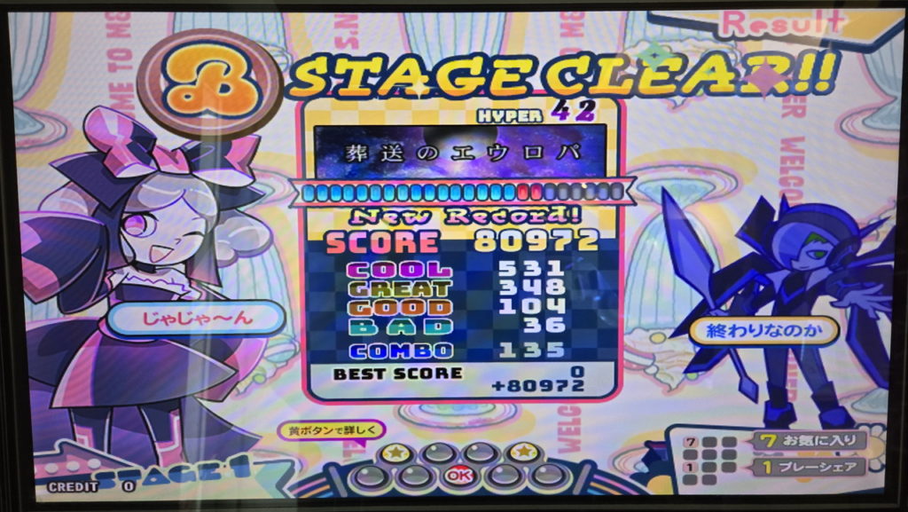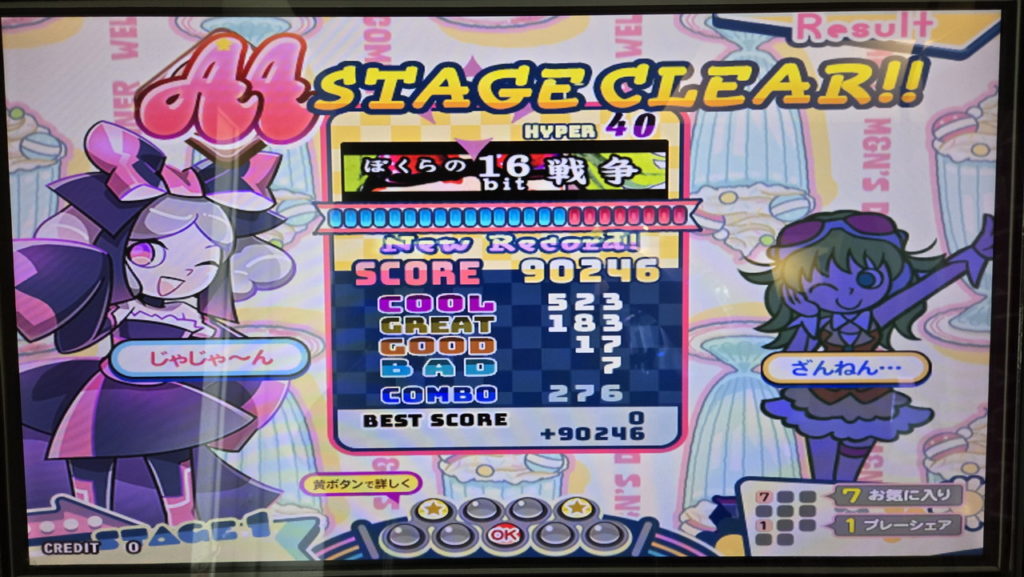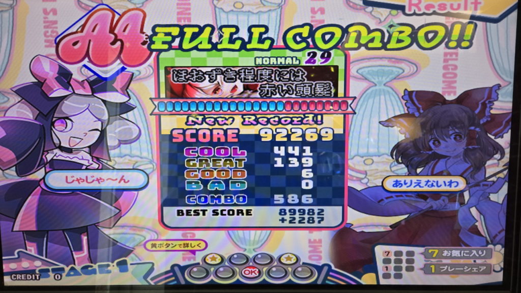 初見なのでそのあたりで混乱してしまいましたが、それでもリザルトではBAD7と、このレベルにしては少ないミスで済みました。