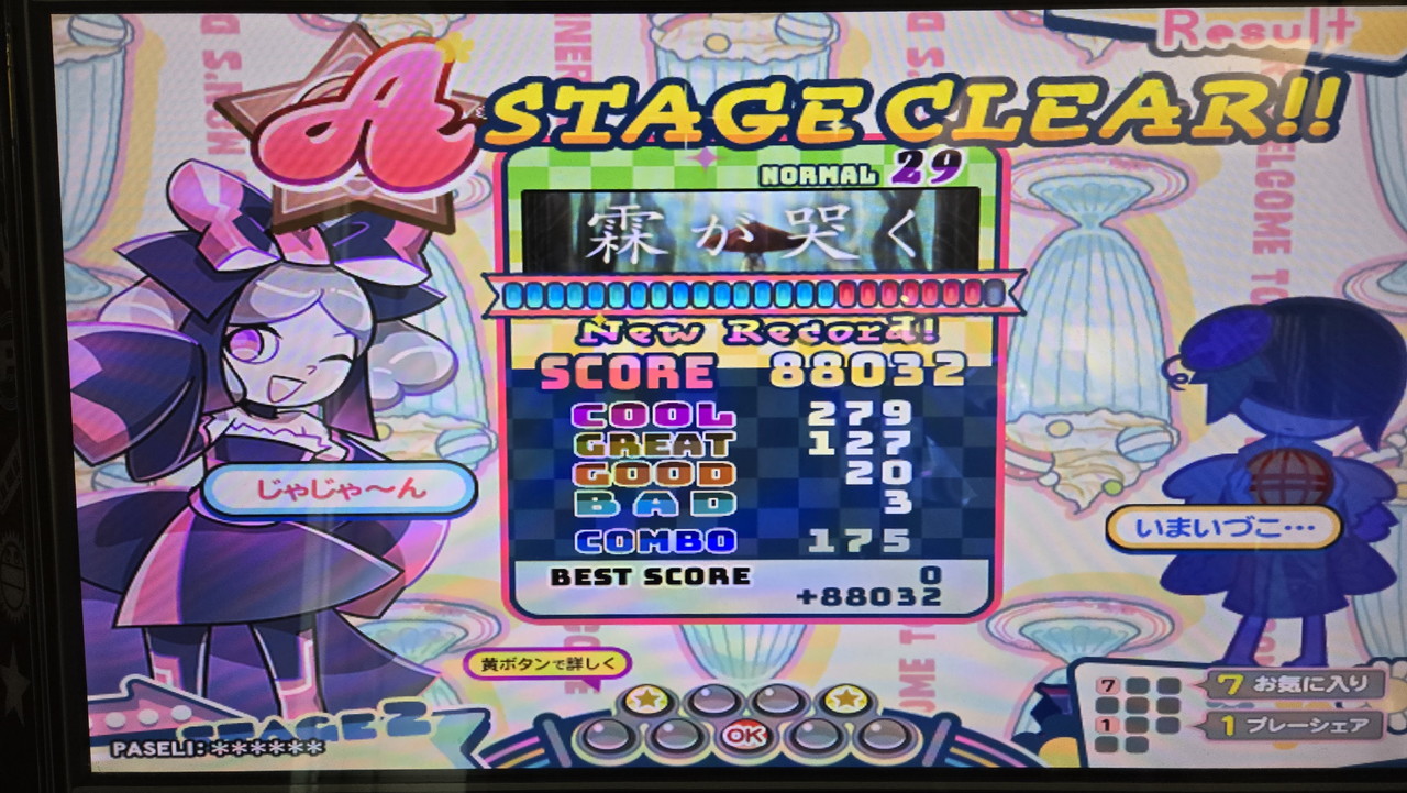 ラストは縦連部分のリズムが素直でなく、フルゲージでクリアできず……。しかしBADは3なので、ウォーミングアップだとこんなものかと割り切りました。