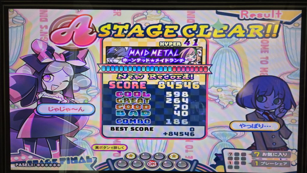 これの直前にプレイした同レベルのほおずきHでまたしても黒◆・黒★(いずれもBAD40前後)でやられたので、半ばヤケクソ気味になって選曲したのがメイドメタルHです。