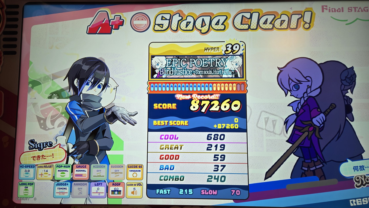 エピックポエトリーHの総ノーツ数982で、レベル39としてはかなり物量でしょう。40としてみても上位10%内に入るくらいの物量だと思います。