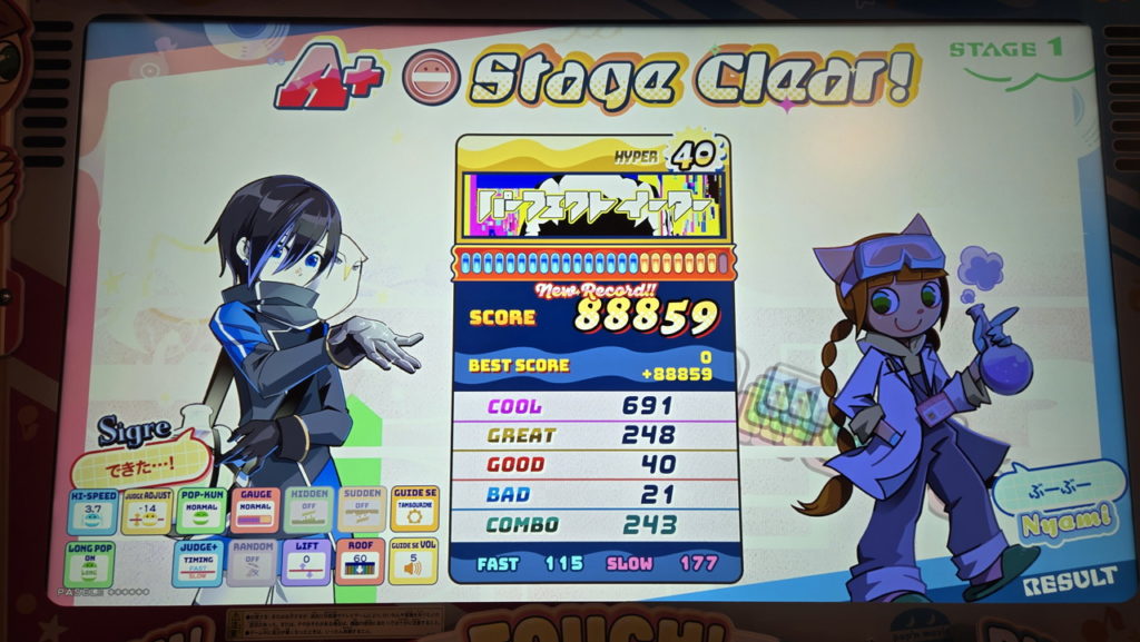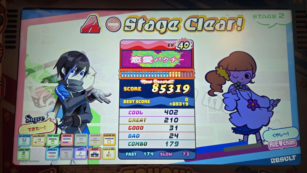 Livelyにも収録されていて、そちらでもH譜面をクリア済みですが、珍しく実機と大差ないBAD数でした。
