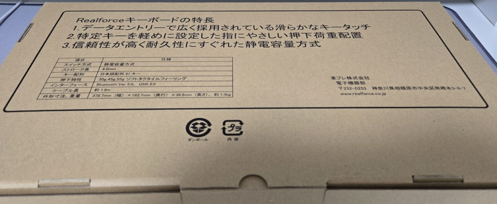 REALFORCE。2年前の秋にR3フルサイズの黒を購入して以来、今回で4台目になります。