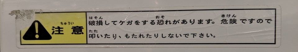 ゲームコーナーの機械の警告ラベルも忘れず撮りました。松原店では警告ラベルやエレ協のステッカーは見応えがあるので、引っ越し前はこのためにも良く来ていました。