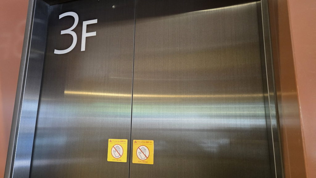 ちなみに、このステッカーが貼られているエレベーターは2基ありますが、撮影の際は時間差で両方のドアが開き、シャッターチャンスがなかなか掴めずにいました。