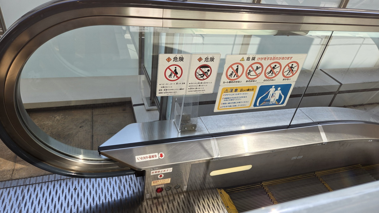 イーストと同じ種類のステッカーが貼付されていますが、乗り方注意、カート類禁止、手すり乗り出し禁止の3種類はすべてバージョン違い。四角型V1です。
