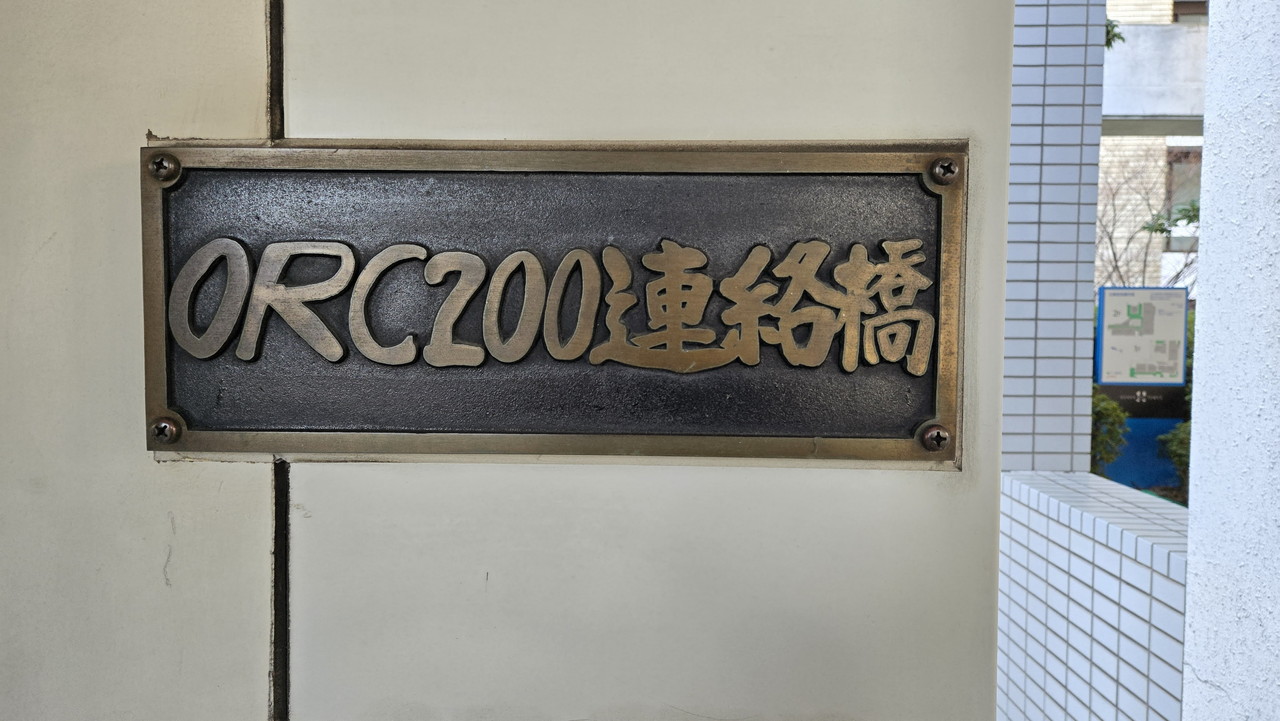大阪メトロ弁天町駅と大阪ベイタワーの連絡橋には「ORC200」の文字が。これは1993年の開業時から2018年まで使われていた旧名称とのことです。