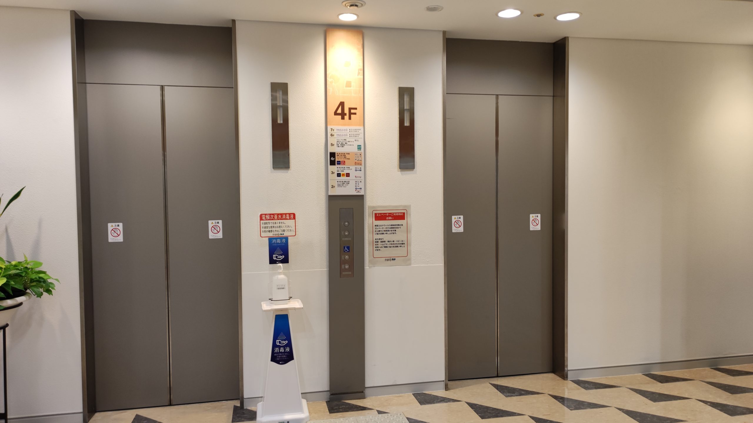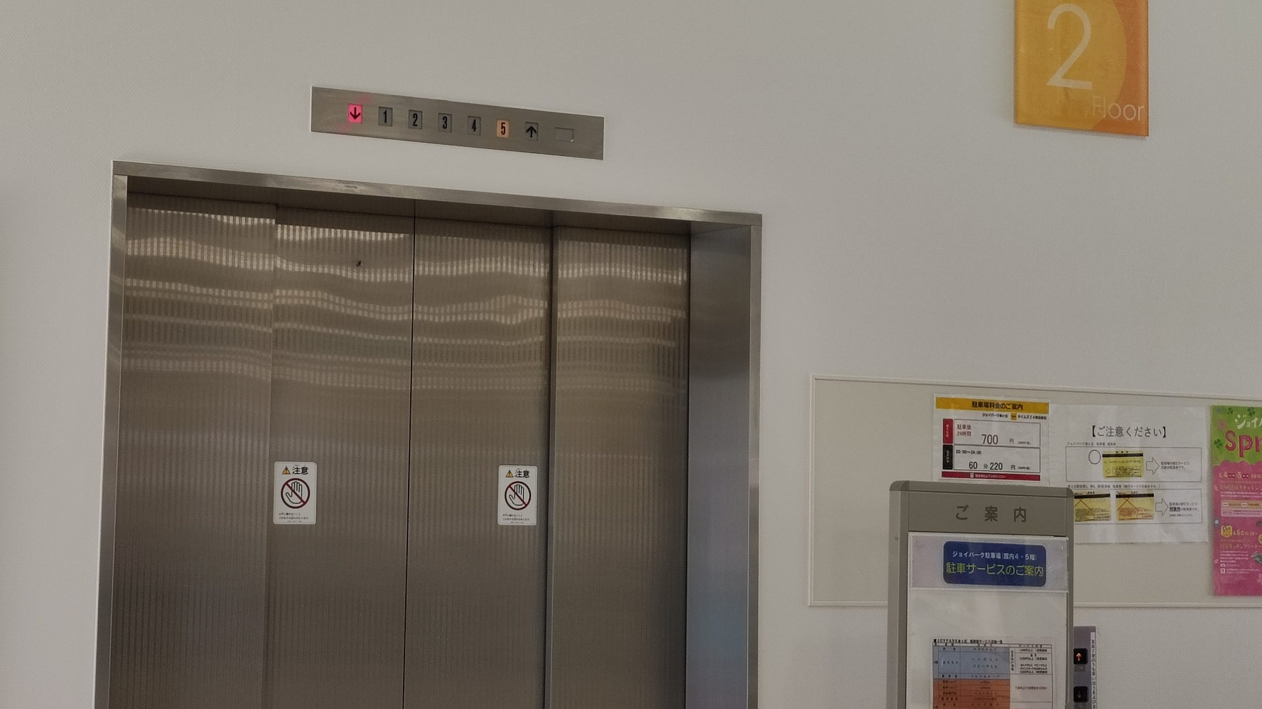 エレベーターでは安定の手のひらステッカーを確認できました。