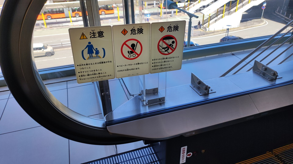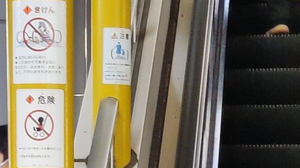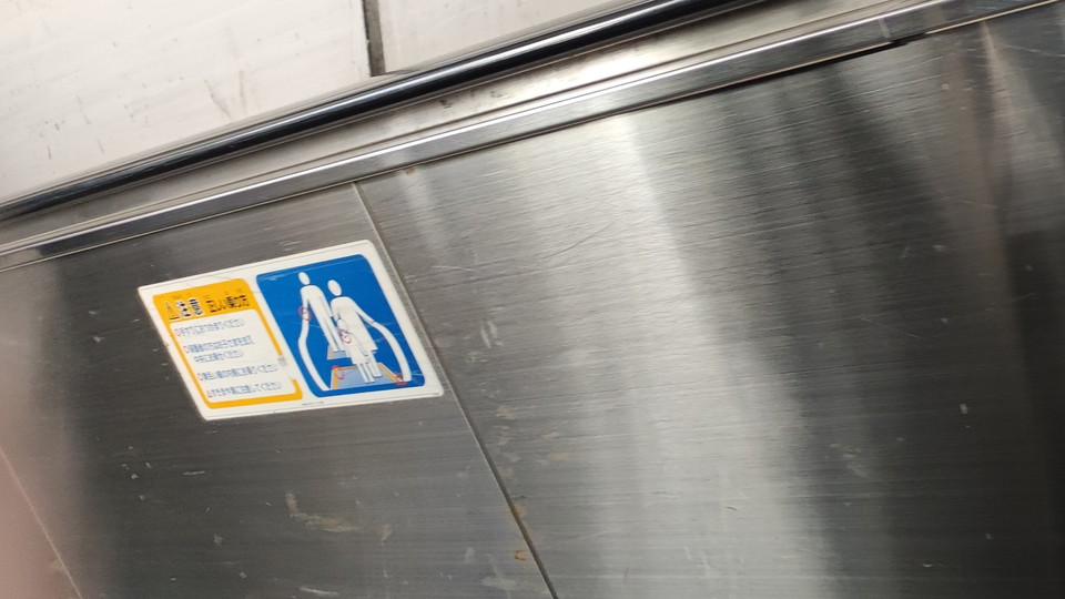 エスカレーターのボディだけでなく柱などにも貼られているのですが、そちらのほうが目立ちましたので撮影タイミングを得られたという感じです。