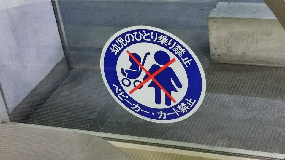 エレベーターでは1階に泣き顔、2階に手のひら禁止マークのステッカー(いずれもエレ協)がドアに貼付されていました。