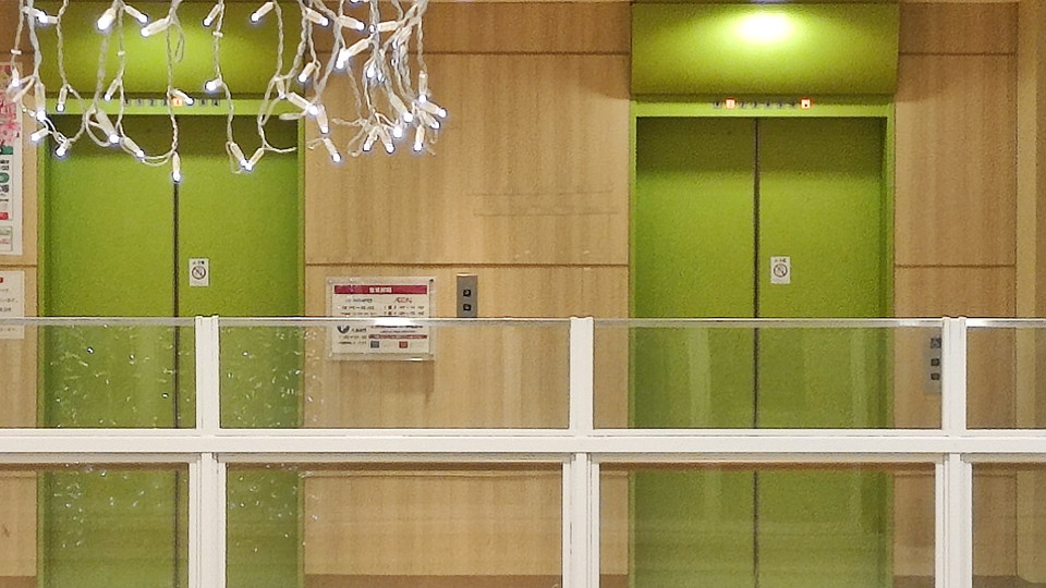 クリニックなどが入居している駅ビルですが、今回はビルの中に入らず、駅のホームのエレベーターで泣き顔ステッカーを確保しました。