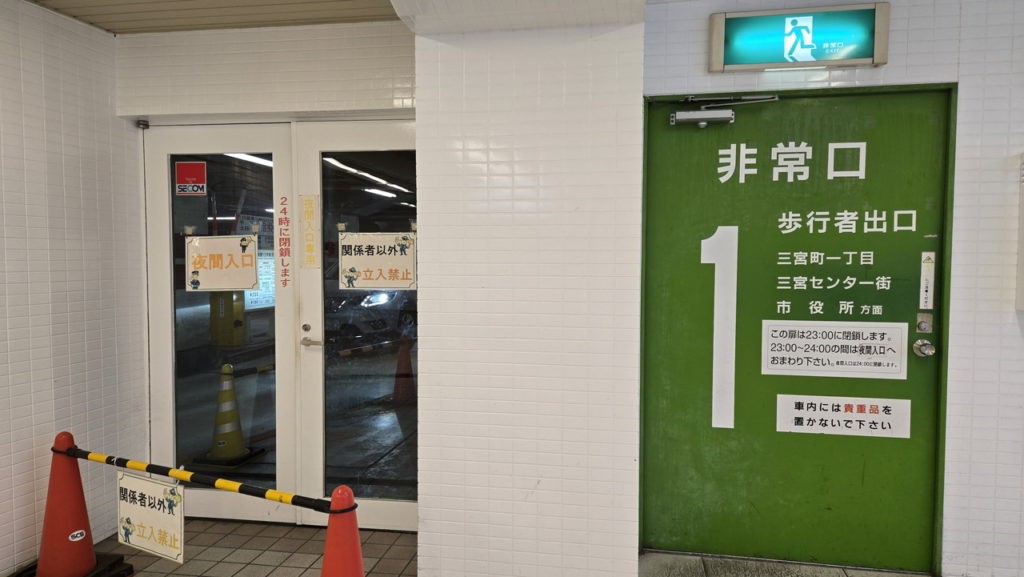 地下は駐車場のようですね。非常誘導灯も最近少し気になっているので写真に収めました。