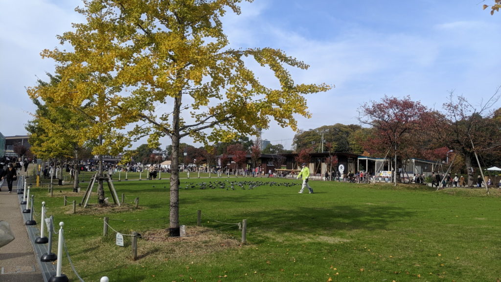 繁華街にほど近い公園のてんしば。炭火の香り、サッカーコートやアスレチックを楽しむ親子連れを見て、自分はハーベストの丘や大泉緑地に似たどこか懐かしい雰囲気を感じました。ハーベストの丘など、子どものときによく連れて行ってもらったからですね。