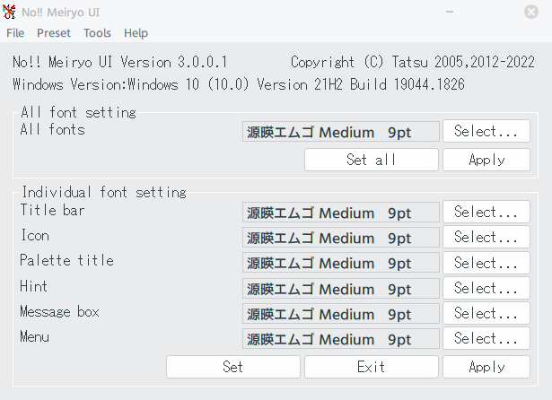 日本語では「Meiryo UIも大っきらい!!」という大胆すぎるネーミングのツール
